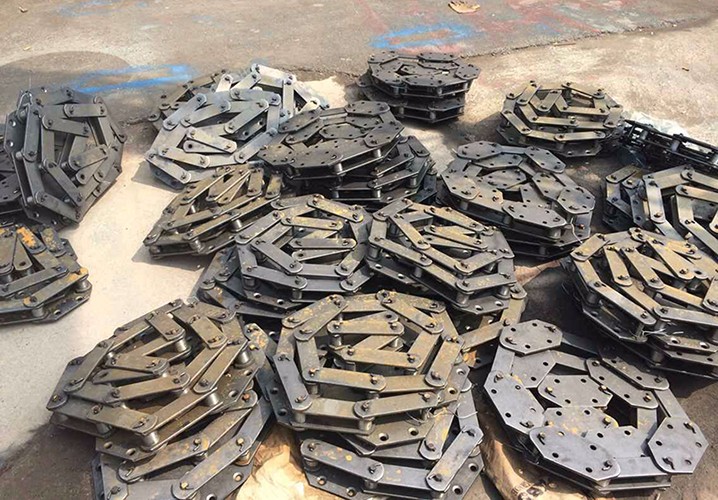 中間節(jié)---部分中間節(jié)裝有軌道(雙鏈),以防止鏈條工作中擺動(dòng)。